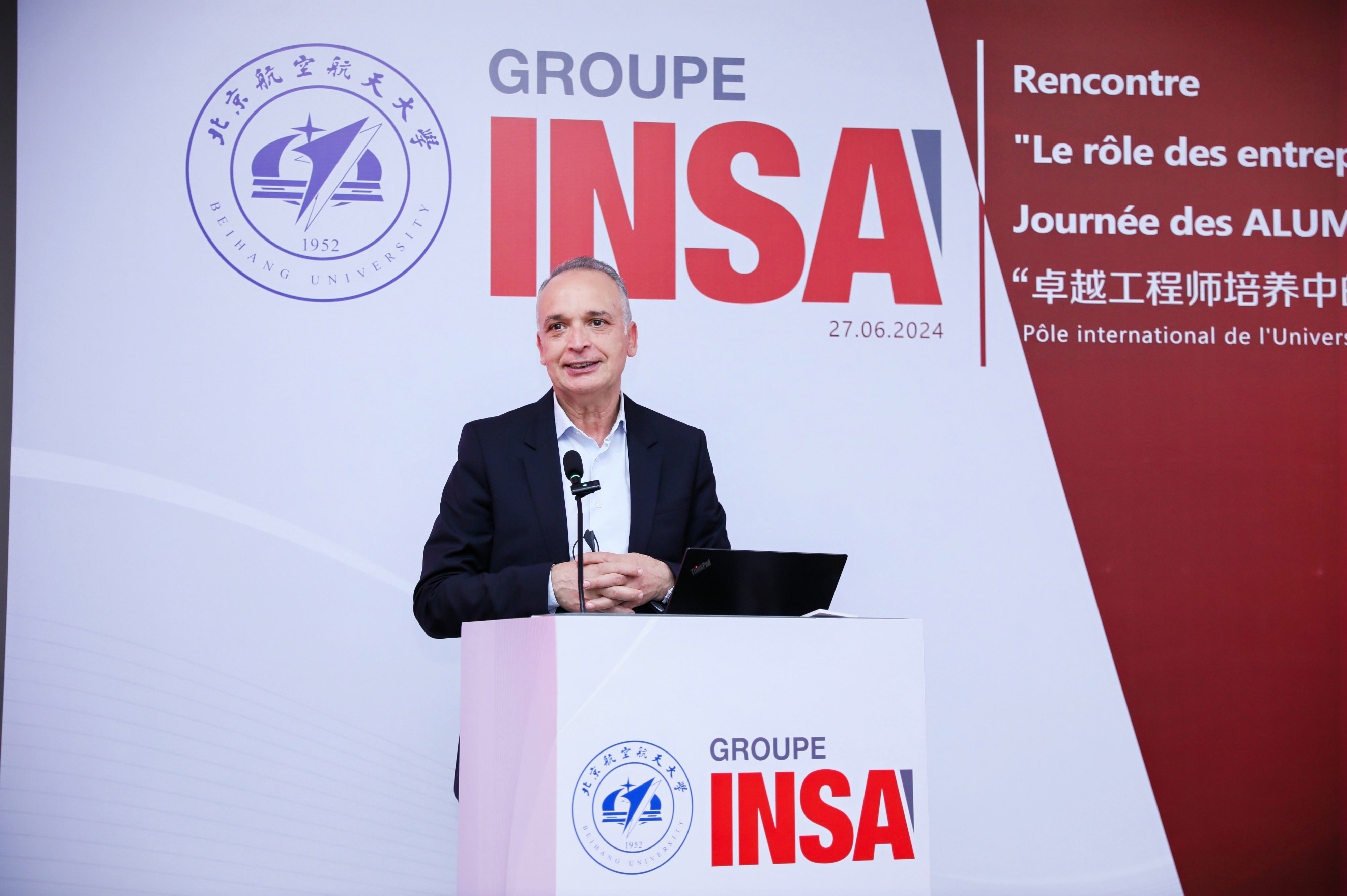 在校期间,INSA代表团参加了由北航国新院举办的“‘卓越工程师培养中的企业角色’研讨会暨INSA校友日”活动。此次活动以校企合作为核心议题,吸引了已回国工作创业的INSA校友、企业界精英及在校师生,共同探讨产教融合在卓越工程师培养中的实践意义。研讨会由北航国新院副院长张巍、国际合作办公室主任陈超主持。