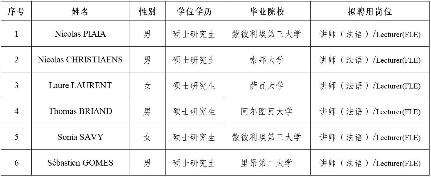 关于拟编外聘用Nicolas PIAIA等人员的公示