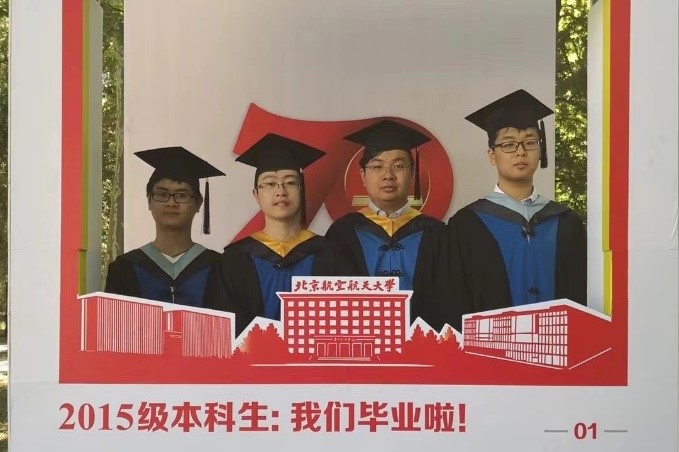 2012年,在北航建校60周年之际,我第一次踏入了北航校门。北航是一所有情怀、有担当、有梦想的大学,求学九载,我看到了一代代北航人身上的烙印——空天报国、服务国家。光阴似箭,转眼间北航70华诞已经到来。七十载空天报国,新时代逐梦一流,这是全体北航人共同的节日,是北航发展史上的重要里程碑,也是北航展翅腾飞的新起点!祝福北航在未来取得更好的成绩,相信北航将继续为祖国的航空航天事业做出更大的贡献!