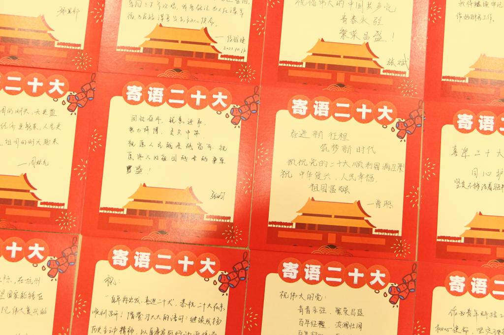 此外,在二十大召开前夕,党支部联合图书馆,组织“同心共庆二十大”活动,通过合影共庆、祝福献党、好书推荐等多种形式,鼓励师生传承红色基因,表达美好祝愿。
