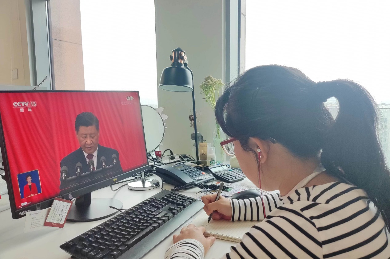 10月16日上午,在院师生第一时间通过电视、网络、手机客户端等形式收听收看开幕会现场直播,持续聚焦会议公报、精神解读等会议信息,了解会议动态。师生们认真听、认真记,为以中国式现代化全面推进中华民族伟大复兴的时代强音而倍感振奋,深受鼓舞!