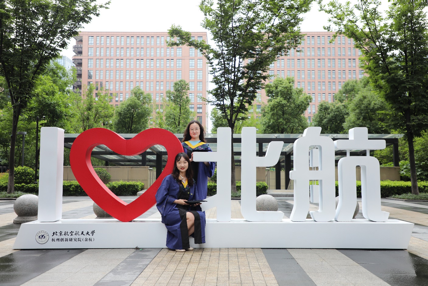 “I爱北航”雕塑、北航经典形象掠影、“C位毕业”等趣味横生的手拿板,为毕业合影增添了一抹色彩;西湖边的光与影、塔与桥,也留下了一份独属杭城的回忆,一帧一相,永久保存。