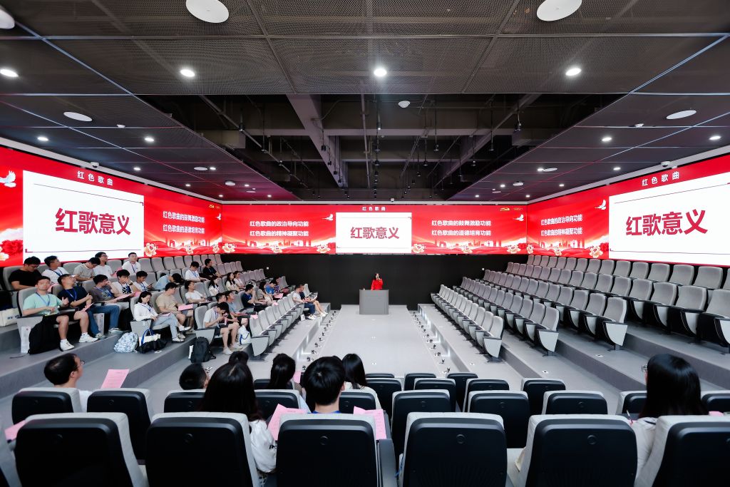 美育课堂上,北京亚洲成人在线一二三四五六区衣萌老师为同学们介绍了红色歌曲的起源、发展历程以及各个阶段的代表作品,并带领大家合唱了《团结就是力量》,深深激发了根植在北航人心中的红色基因。