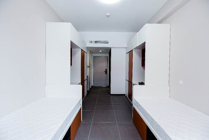 体验活动中,同学们前往学生宿舍进行了简单休整。本科生和硕士生宿舍为双人间,博士生宿舍为单人间,宿舍附近也将配备便利店、菜鸟驿站、文印店、洗衣店等生活便利设施,打造舒适便利的居住环境。