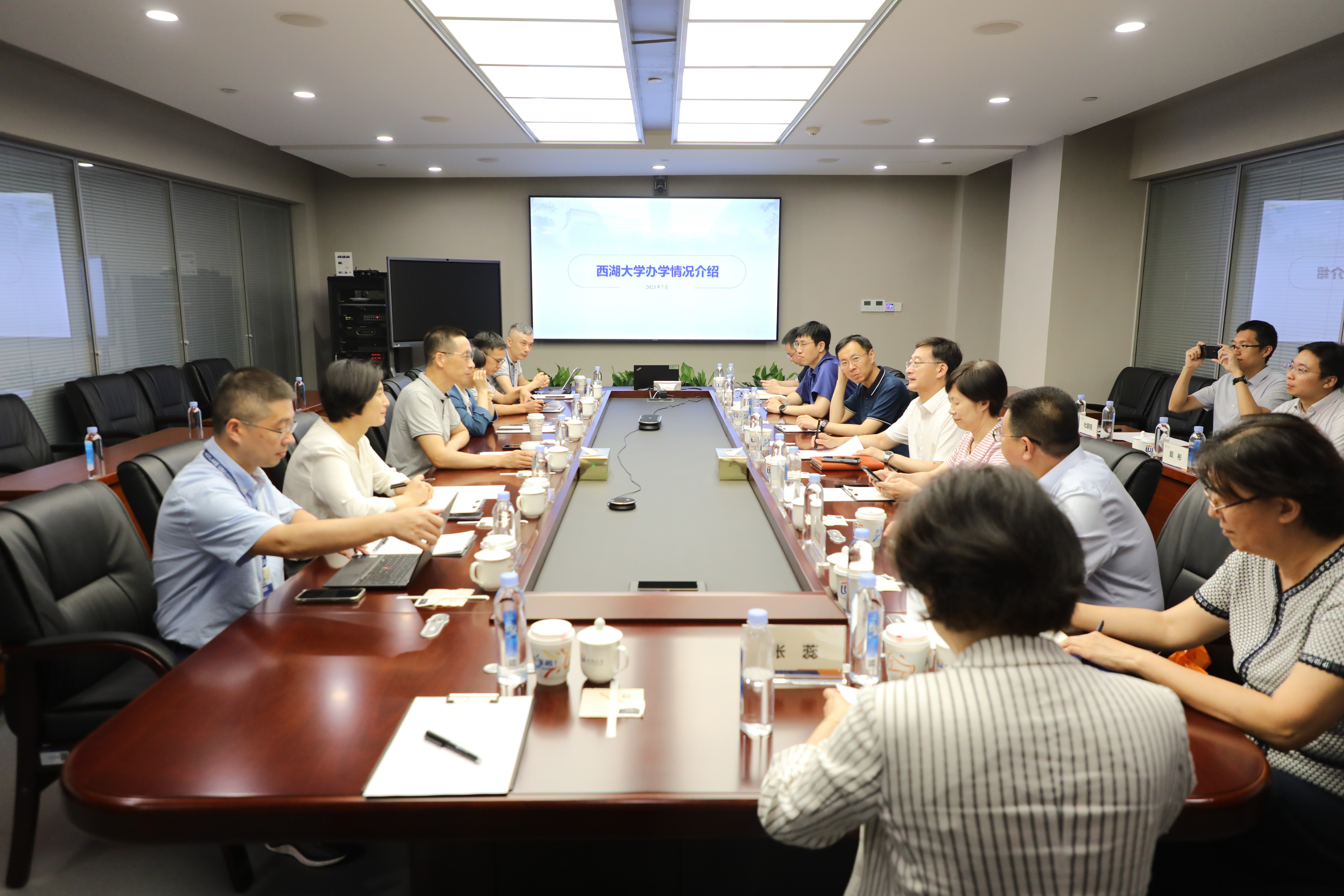 在杭期间,王云鹏一行还专程来到西湖大学,就西湖大学办学经验与特色开展调研。西湖大学校长施一公,副校长、学校秘书长朱晓芸出席座谈会。
