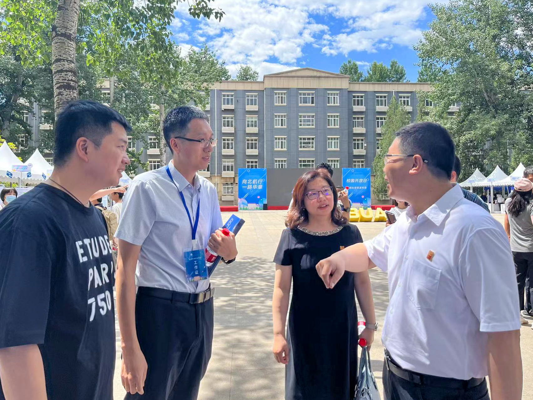 △吕卫锋副校长(右一)与邓怡主任(右二)来到开放日活动现场