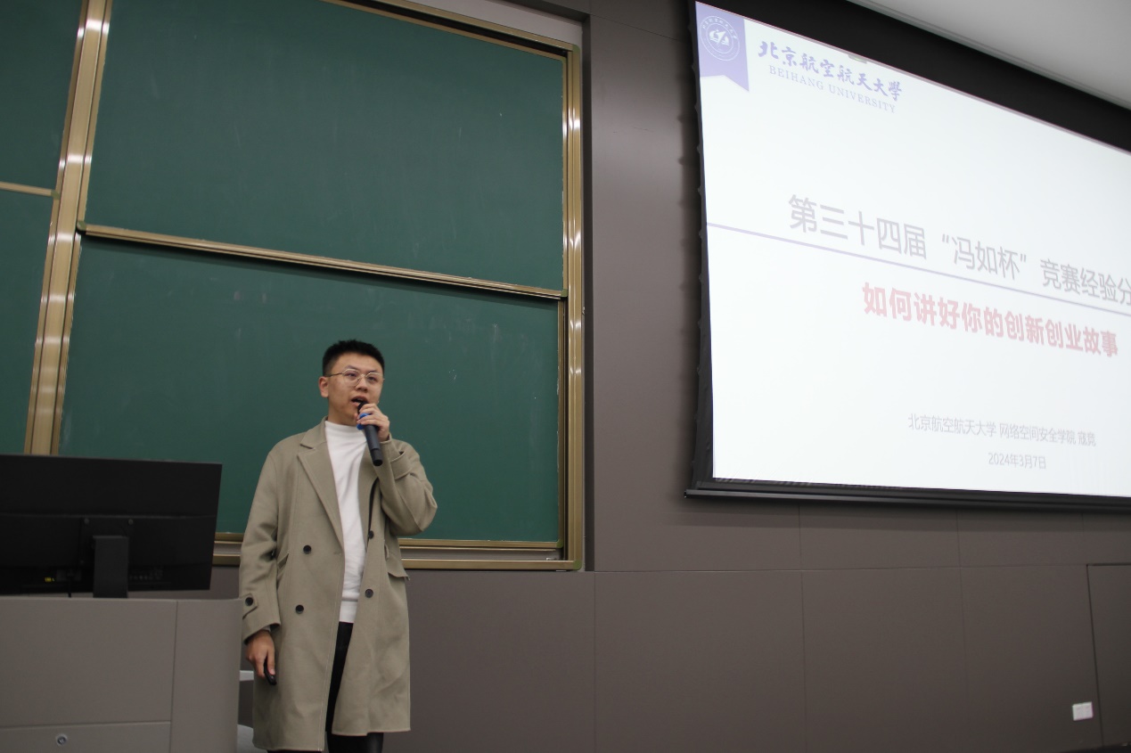 宣讲会上,两位优秀学生代表分享了自己参加“冯如杯”竞赛的宝贵经验。寇竞同学结合成果展示的七个阶段,从理论、技术、方法到应用创新,系统解析了创新的方方面面,向同学们进行了全方位展示。徐若晗同学结合自身科研经历,细致讲解了“冯如杯”竞赛的注意事项,鼓励同学们提高主观能动性,与学术老师积极交流,在科研道路上保持毅力和决心,坚定追求科研奋斗目标。