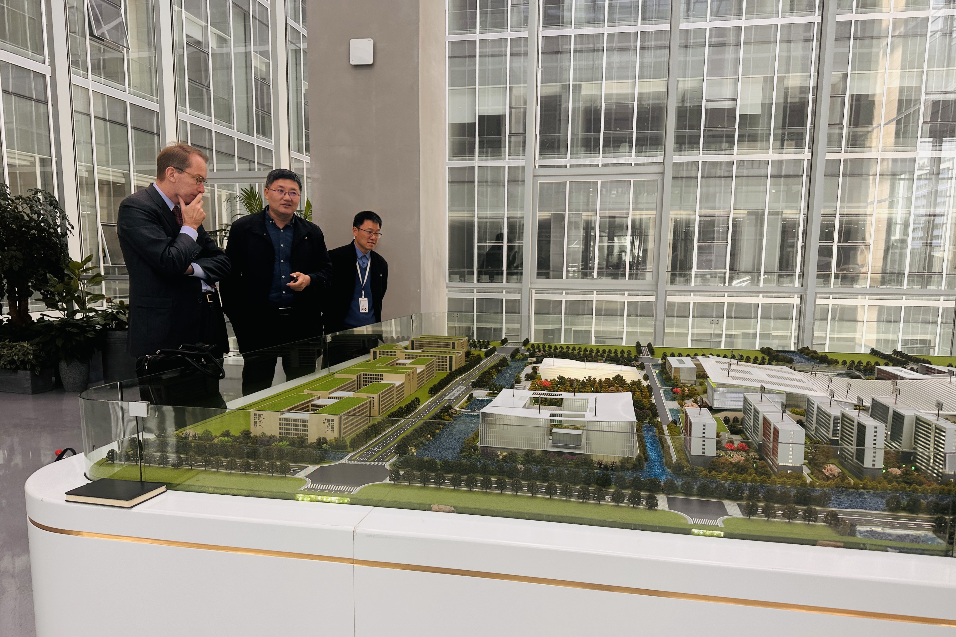会后,在陈龙飞副院长的陪同下,安德烈亚斯·哥登博格执行总裁一行参观了北航杭州国际校园。