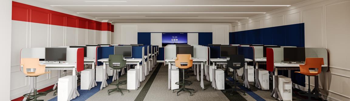 作为银校合作项目,法语VR教学实验室旨在打造一个复合多元、可持续、结合 VR 技术的新型学习空间。实验室配套开发沉浸式虚拟实景的法语学习工具——VR 法语学习系统,结合了虚拟角色对话互动、语音识别、真实情境模拟等多种功能,为学生提供全方位、多感官的学习环境。学生可以在仿真场景中与虚拟角色进行互动对话,提高法语听说能力和多场景交流能力。