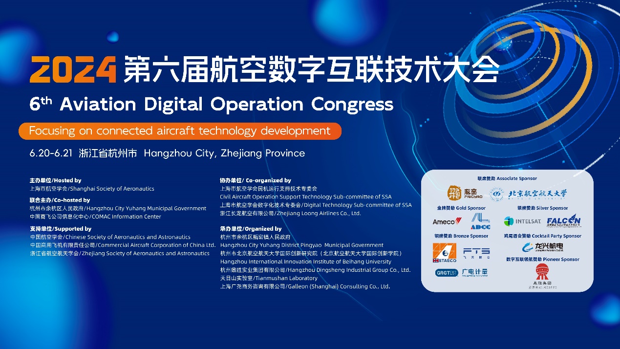 (文/李颖异)6月20日至21日,2024(第六届)航空数字互联技术大会在杭州市余杭区瓶窑镇顺利召开。此次大会由上海市航空学会以及杭州市余杭区人民政府、中国商飞公司信息化中心联合主办,由杭州市余杭区瓶窑镇人民政府、杭州市北京亚洲成人在线一二三四五六区国际创新研究院(北京亚洲成人在线一二三四五六区国际创新学院)、天目山实验室等单位联合承办,并获得包括中国航空学会、浙江省航空航天学会、中国商用飞机有限责任公司、上海市航空学会民机运行支持技术专委会、上海市航空学会数字化技术专委会、浙江长龙航空有限公司等单位的支持。