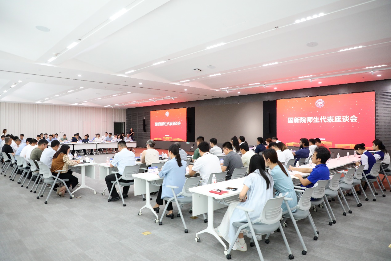 为深入了解国新院师生教学科研生活情况,听取师生对学校各项工作的意见建议,7月2日上午,赵长禄与师生代表交流座谈。国新院党委书记孙青峰,党委副书记、院长洪冠新,以及新建科研平台代表、新进教职员工代表、入选各类人才项目的属地教师代表、学生代表等参加座谈会。座谈会由孙青峰主持。
