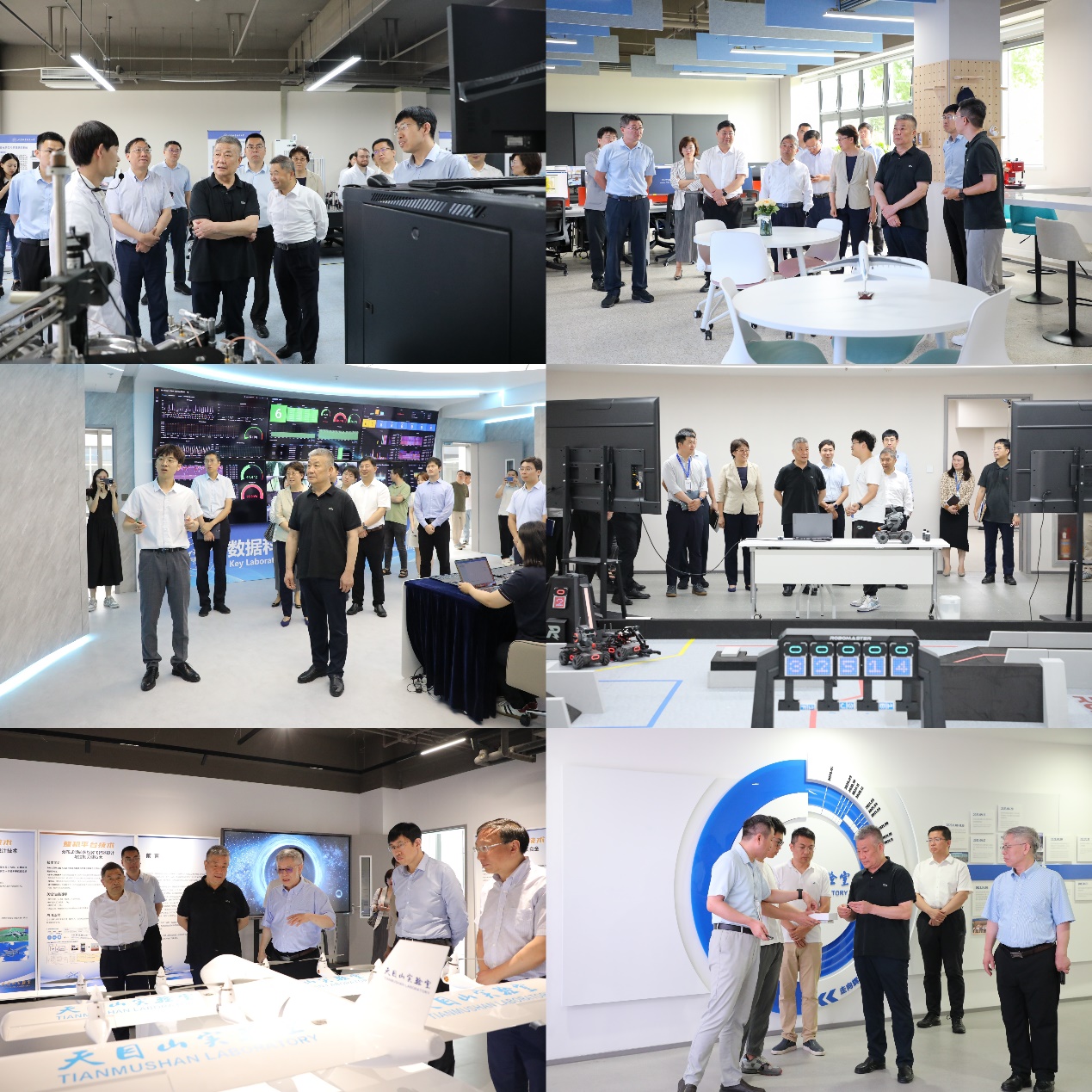 会前,赵长禄一行参观调研了国新院自旋芯片与技术全国重点实验室、新型量子物态实验室、数据科学与智能计算科教平台、中法达索卓越教育中心、智能测试与健康管理技术联合实验室、天目山实验室等科教协同平台。在自旋芯片与技术全国重点实验室,赵长禄与平台负责人林晓阳教授交流集成电路关键技术攻关情况,了解实验室最新科研成果。在集群智能无人系统实验室,赵长禄认真观摩了中法航空学院大一学生展示的机器人空地协同对抗表演,了解新生在校学习、生活以及科研活动参与情况,鼓励学生努力成长为具有国际竞争力的领军领导人才。在天目山实验室,赵长禄听取了天目山实验室执行主任马朝利的汇报,了解实验室在产教融合、赋能地方经济发展等方面的最新进展。