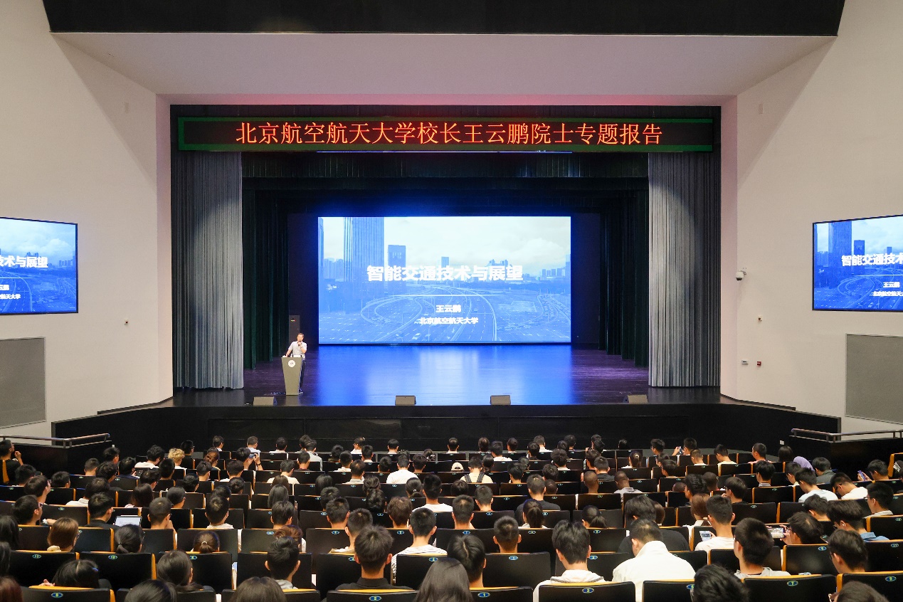 (图文/谢雨倩)9月22日,秋色平分,杭城微凉,北京亚洲成人在线一二三四五六区校长王云鹏院士来到北航杭州国际校园,为北航国新院、北航中法航空学院、北航杭州创新研究院、北航大科学装置研究院、天目山实验室等近千名本研学生带来了题为《智能交通技术与展望》的专题报告。报告会场座无虚席,气氛热烈。
