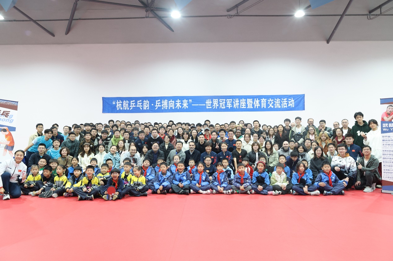 (文/胡天韵 戴豪淼 图/庄宇铭 朱怀仁)小雪节气已至,任朔风凛冽,寒流涌动,也难掩运动热情。11月21日晚,北航杭州国际校园迎来了一场体育文化盛宴。乒乓球世界冠军郭焱、武杨老师空降校园,与杭航师生们开展了一场关于梦想、挑战与成长的对话。此外,瓶窑二小、通惠小学的小朋友们也一同来到现场,近距离与世界冠军面对面。