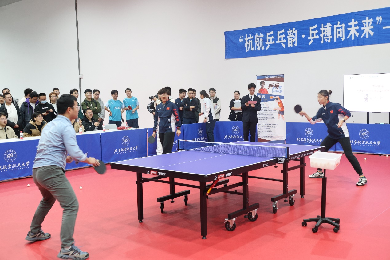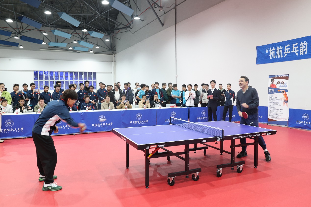 活动伊始,北航国新院党委副书记应伟东致辞,他对郭焱、武杨老师的到来表示衷心感谢,向到场的乒乓球爱好者致以热烈欢迎,并对杭航体育文化的发展表达殷切期许。