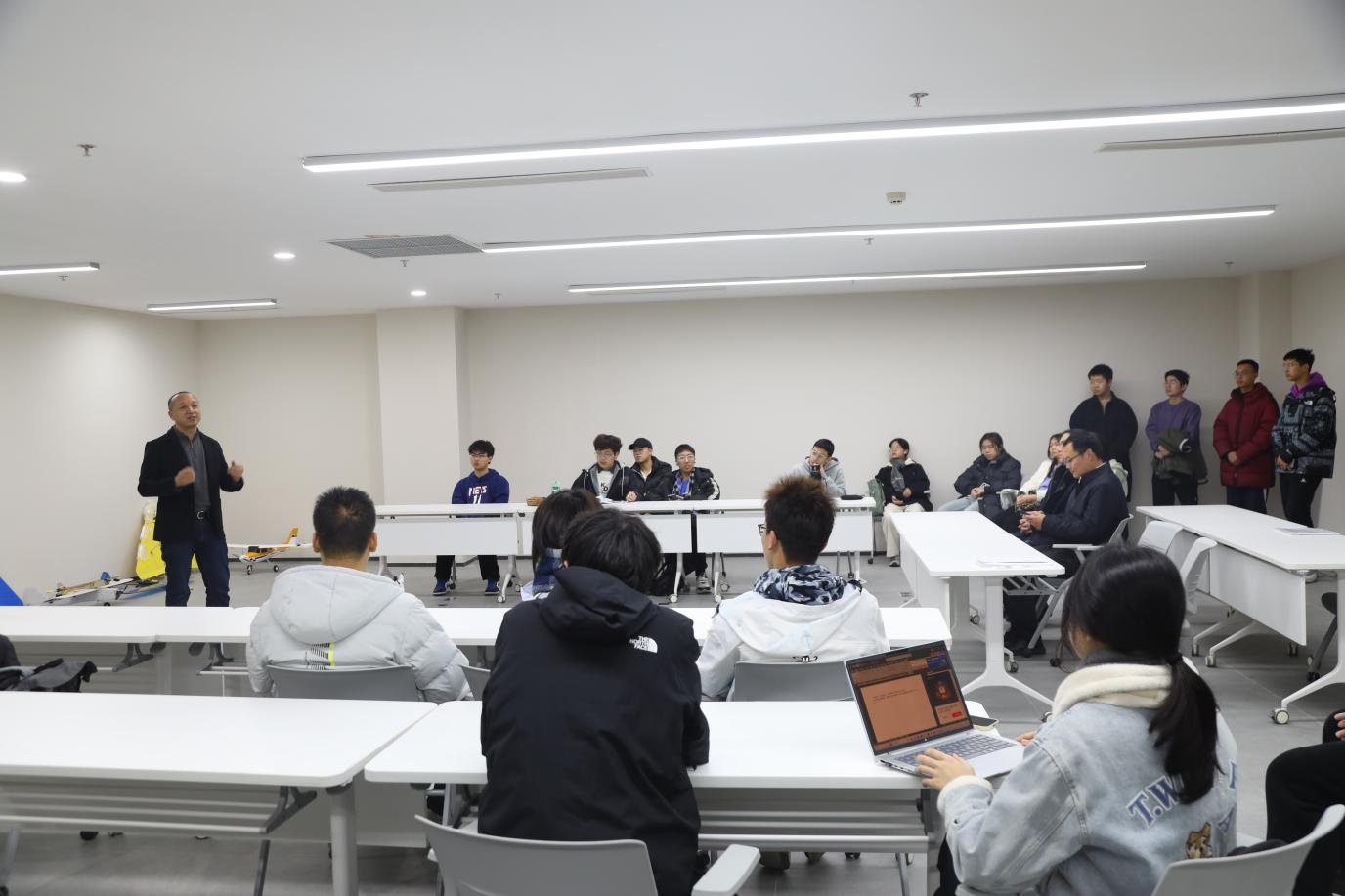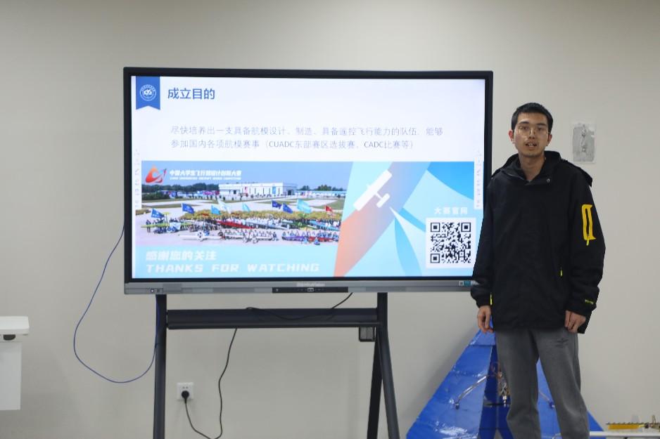 航模队学生代表余才境介绍了航模队的成立目的、发展现状及未来展望。他表示,航模队以尽快培养一支具备航模设计、制造和飞行遥控能力的队伍、参加国内各大航模赛事为目标。目前,航模队已有15支分队,进行了多次技术学习和实践操作。未来,航模队将努力构建完善的技术流程,进行更正规的训练和试飞,为参加国内各大航模赛事做好充分准备。