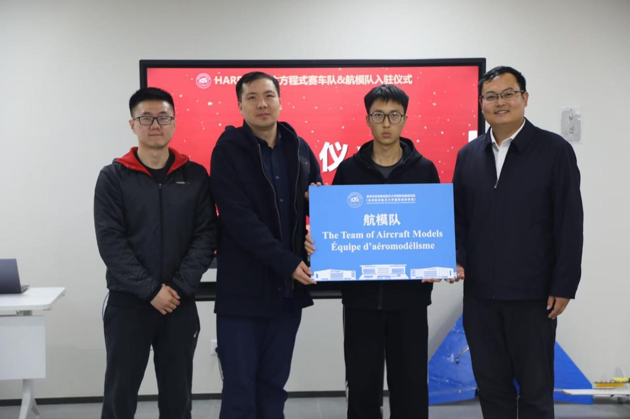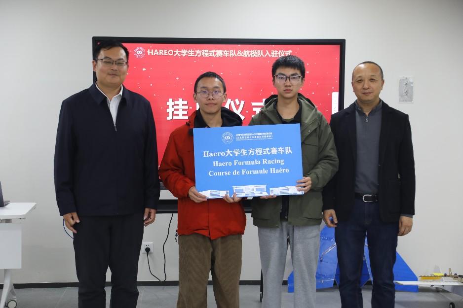 在授牌环节,林海英教授和邵英华老师向学生代表郑重授牌。这一刻,不仅标志着Haero大学生方程式赛车队&航模队正式入驻,更凝聚了所有成员对梦想的执着追求和对未来的无限憧憬。