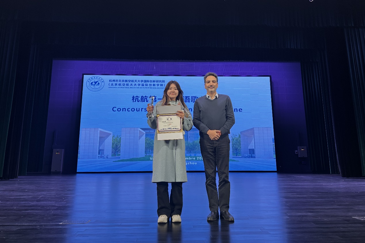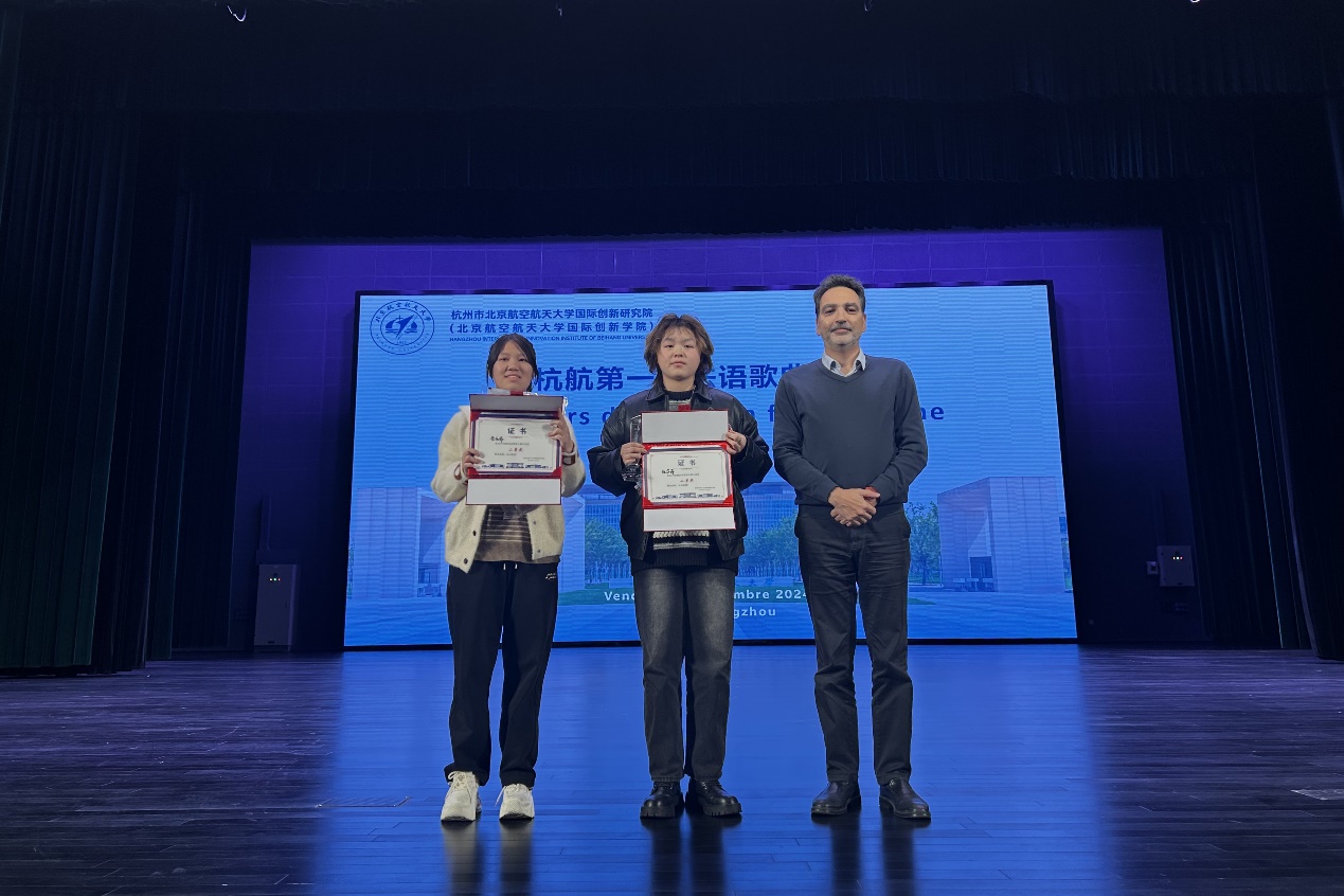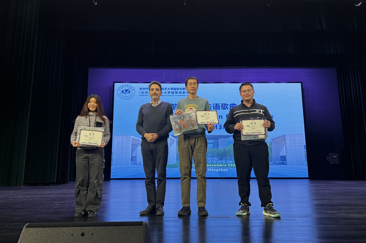 (文/丁旭东 蔡小燕 图/蔡小燕 张睿哲 王一帆)11月的舞台因法语而绽放,因音乐而生辉!11月28日,2024“杭航第一届法语歌曲大赛”成功落幕。这场以音乐为纽带、以法语为桥梁的精彩比赛,吸引了中法航空学院热爱法语与音乐的学生参赛,他们或深情款款,或激情澎湃,用歌声诠释对法语文化的理解与热爱,展现了法语歌曲的独特魅力和他们青春风采和无限才华。中法航空学院法方院长让帝教授,法语课程组教师蔡小燕、季婕、Célia Salem和美育课程组教师衣萌担任大赛评委。