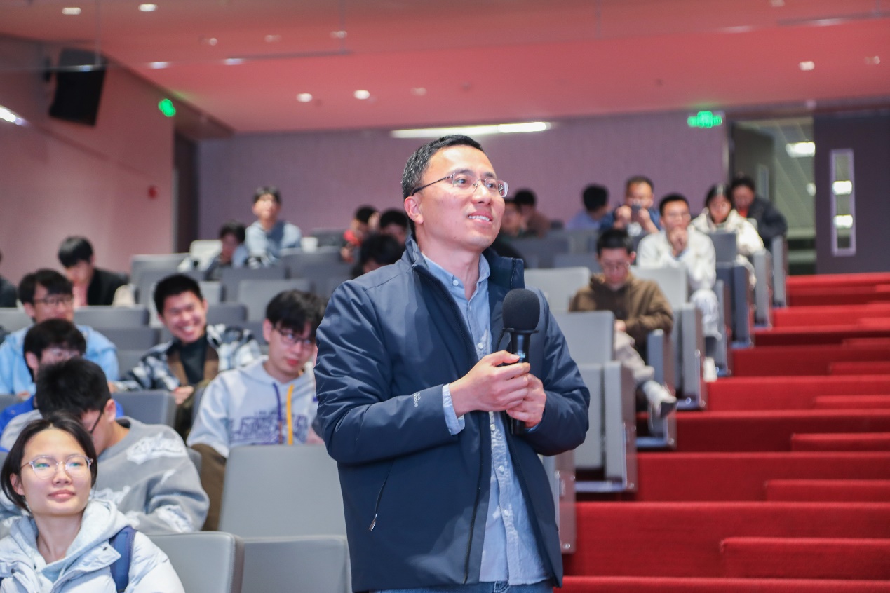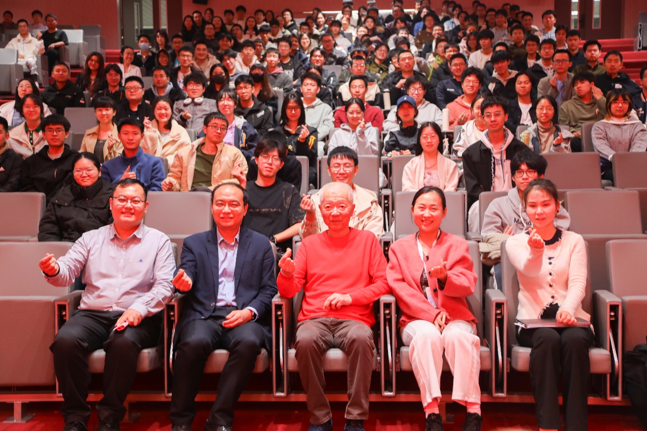 在互动环节,师生们踊跃提问,就AI时代的诸多热点问题与张翼成院士展开讨论和交流,现场气氛热烈。张翼成院士在回应中指出,AI的能力源于人类积累的原始知识材料。在AI时代,人类虽然可以借助技术实现部分“躺平”,但绝不能完全依赖AI。人类必须持续学习与创新,才能不断更新AI知识库,推动个性化发展,促进人类社会的全面进步。